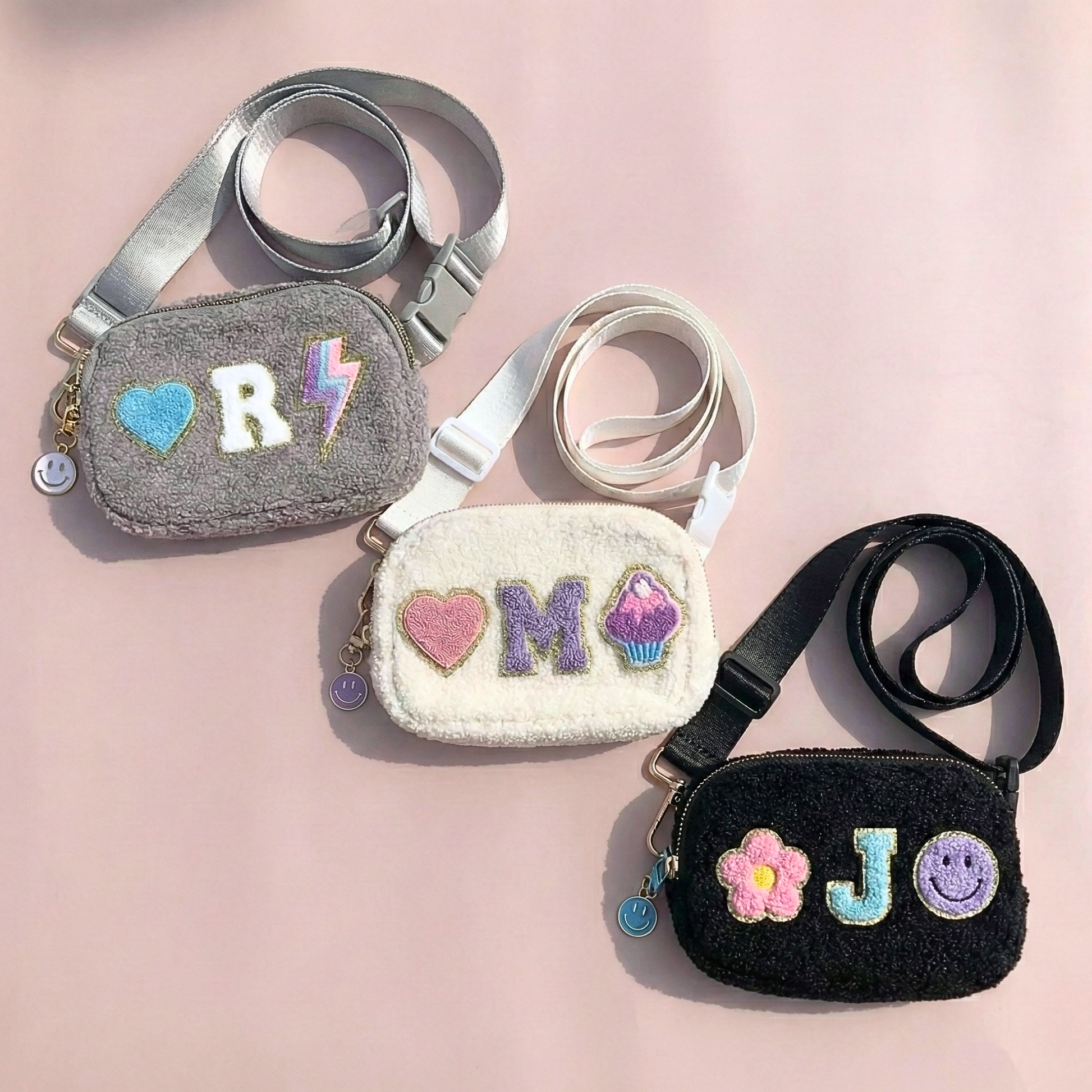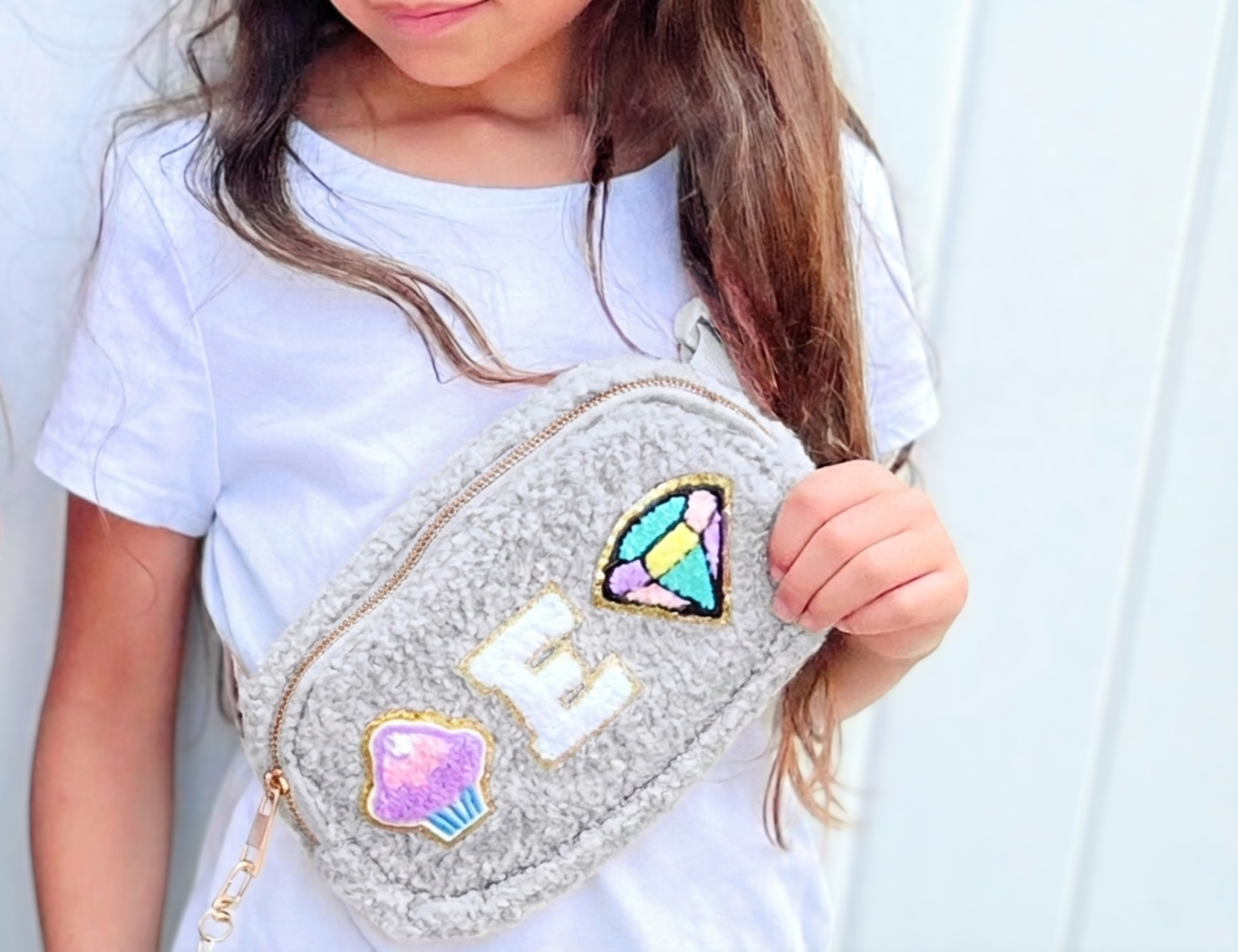 Keep it cozy and custom with our fuzzy sherpa fanny pack, personalized with up to 3 fun chenille patches. Perfect for toddlers, kids, or patch-loving teens, this soft belt bag is the perfect everyday accessory or standout gift.